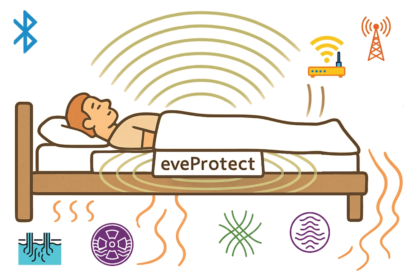 Das Besondere an eveProtect: Effektive EMF-Abschirmung: Reduktion elektrischer Felder sowie hochfrequenter Signale (Mobilfunk, WLAN, Bluetooth, GPS, 5G).